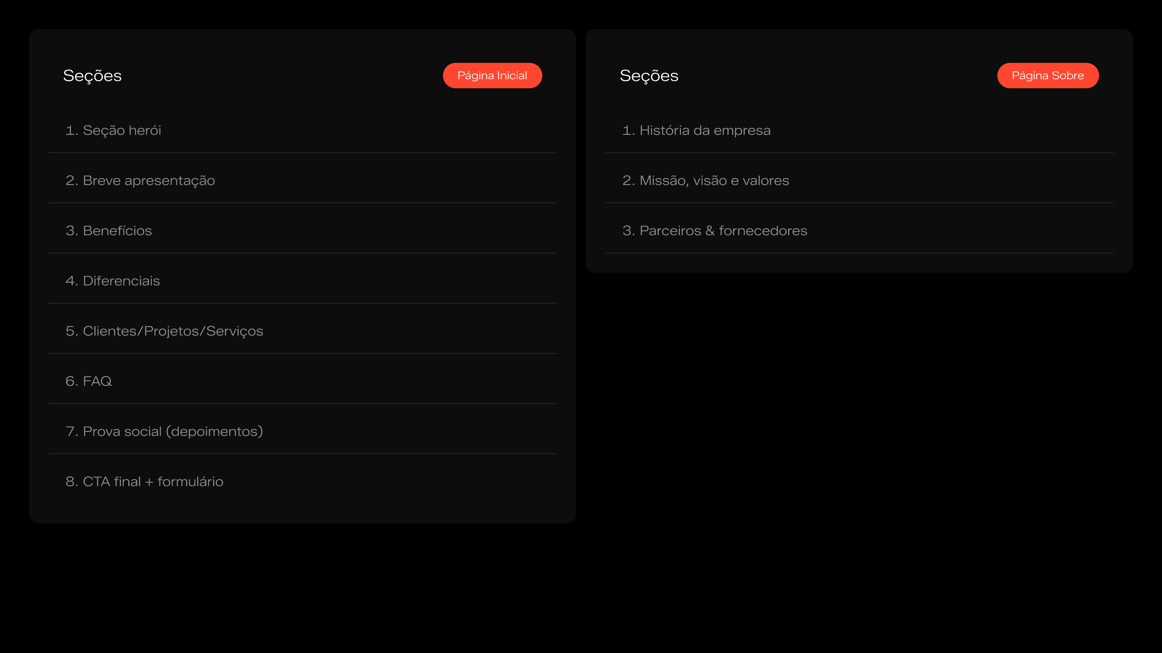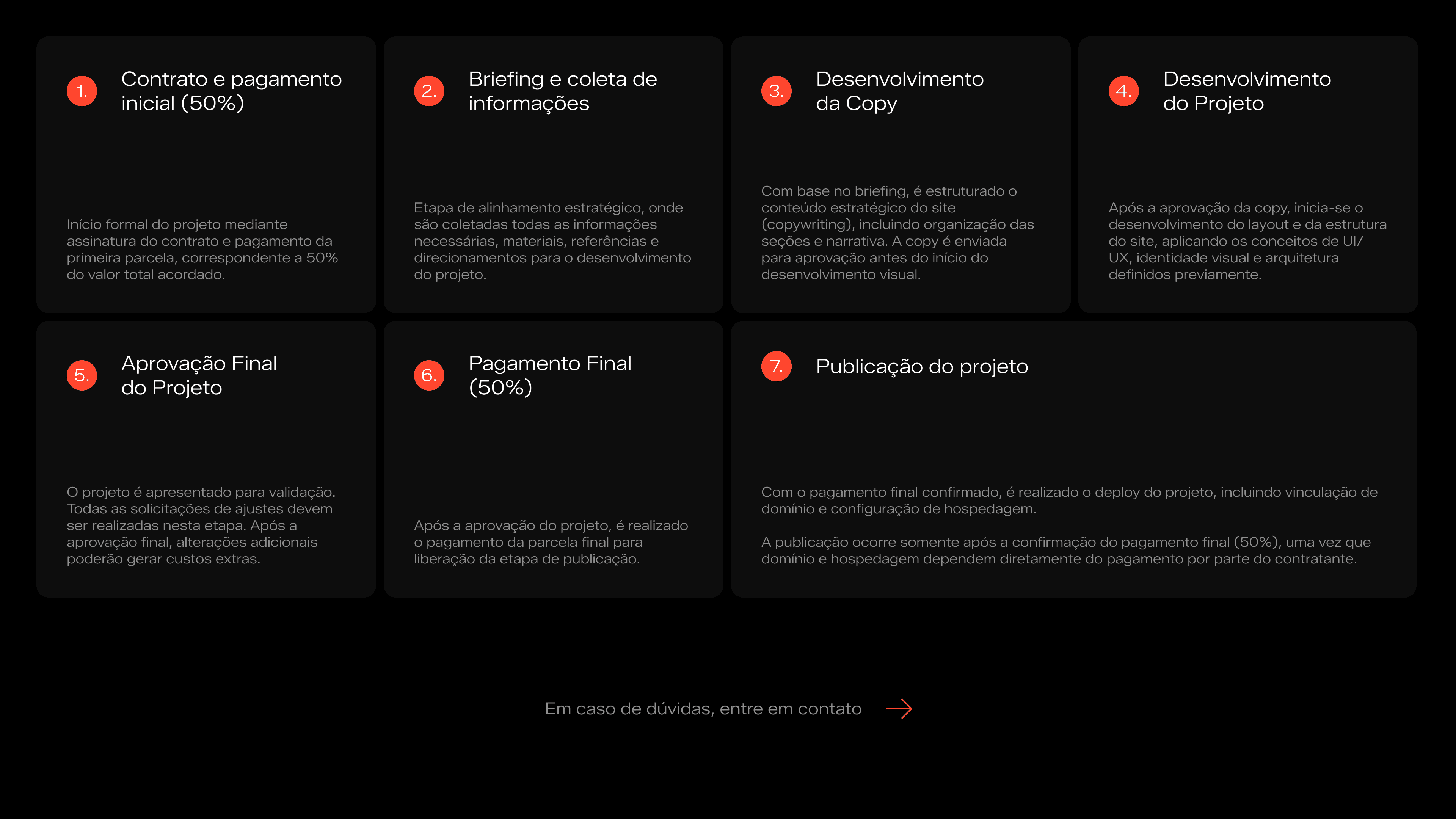 Estrutura que ajuda a alinhar expectativas desde o início, reduzindo retrabalho, ruídos e conflitos futuros.