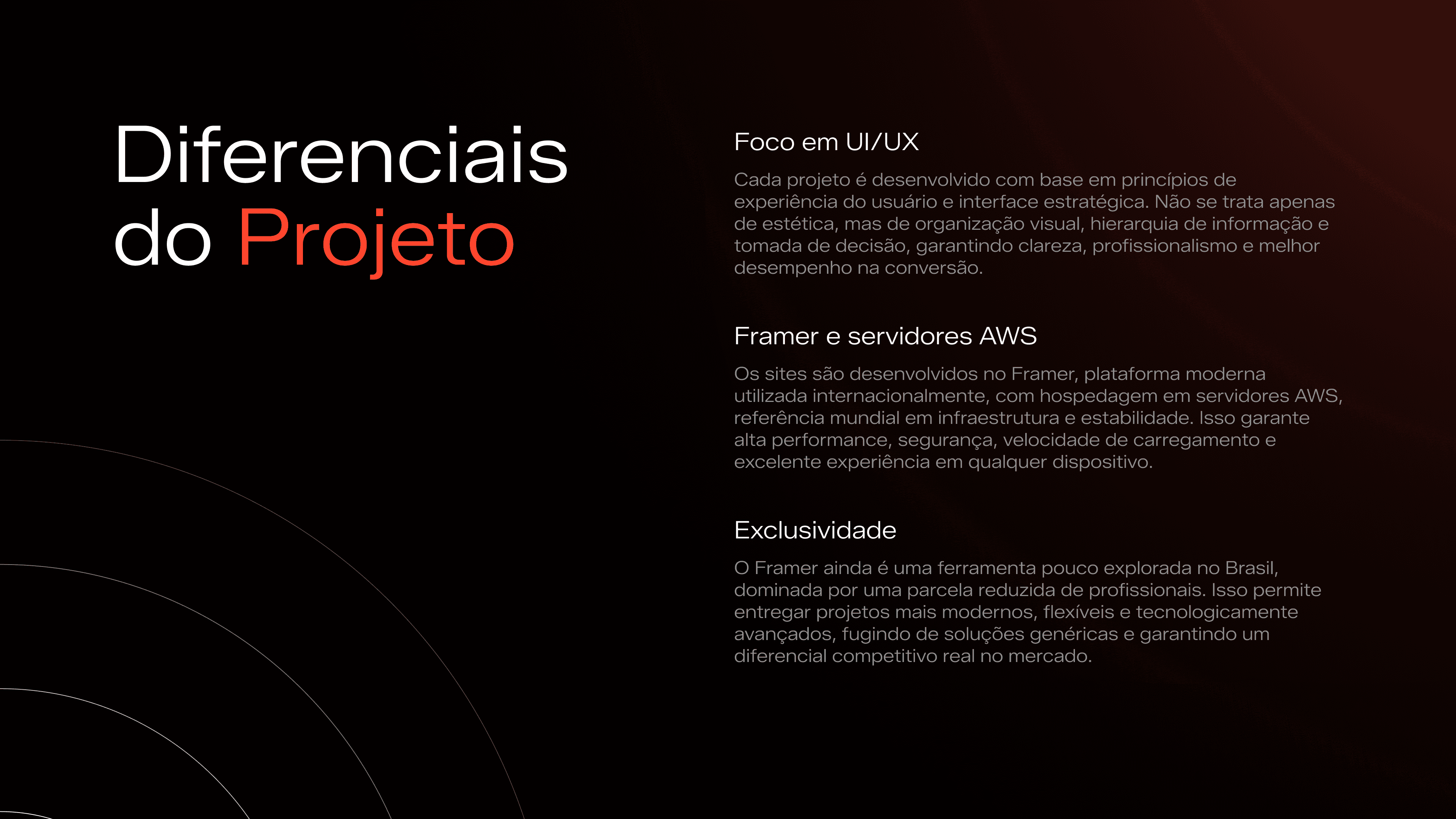 Layout bonito, equilibrado e profissional, sem exageros estéticos que distraem ou confundem o cliente.