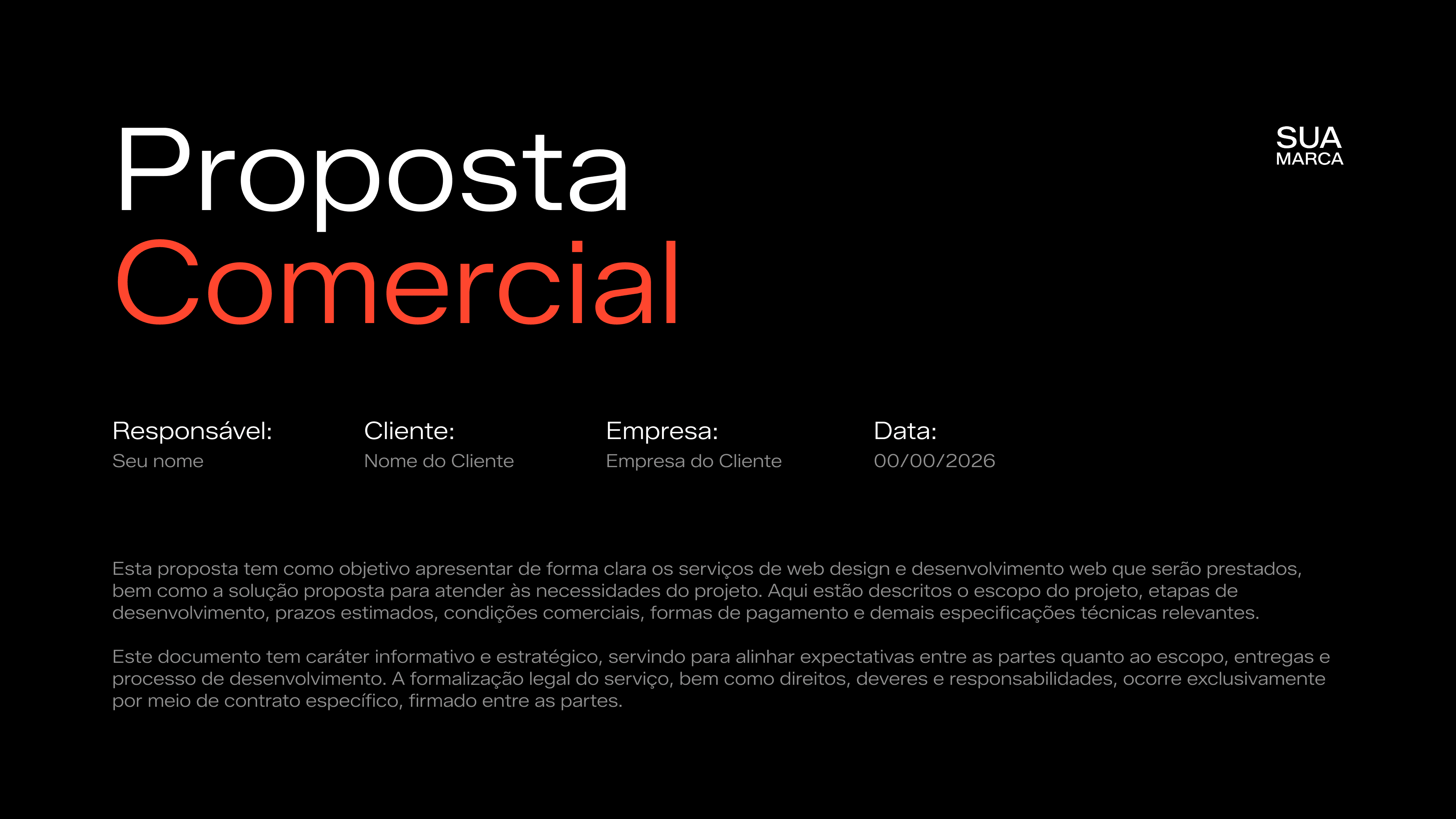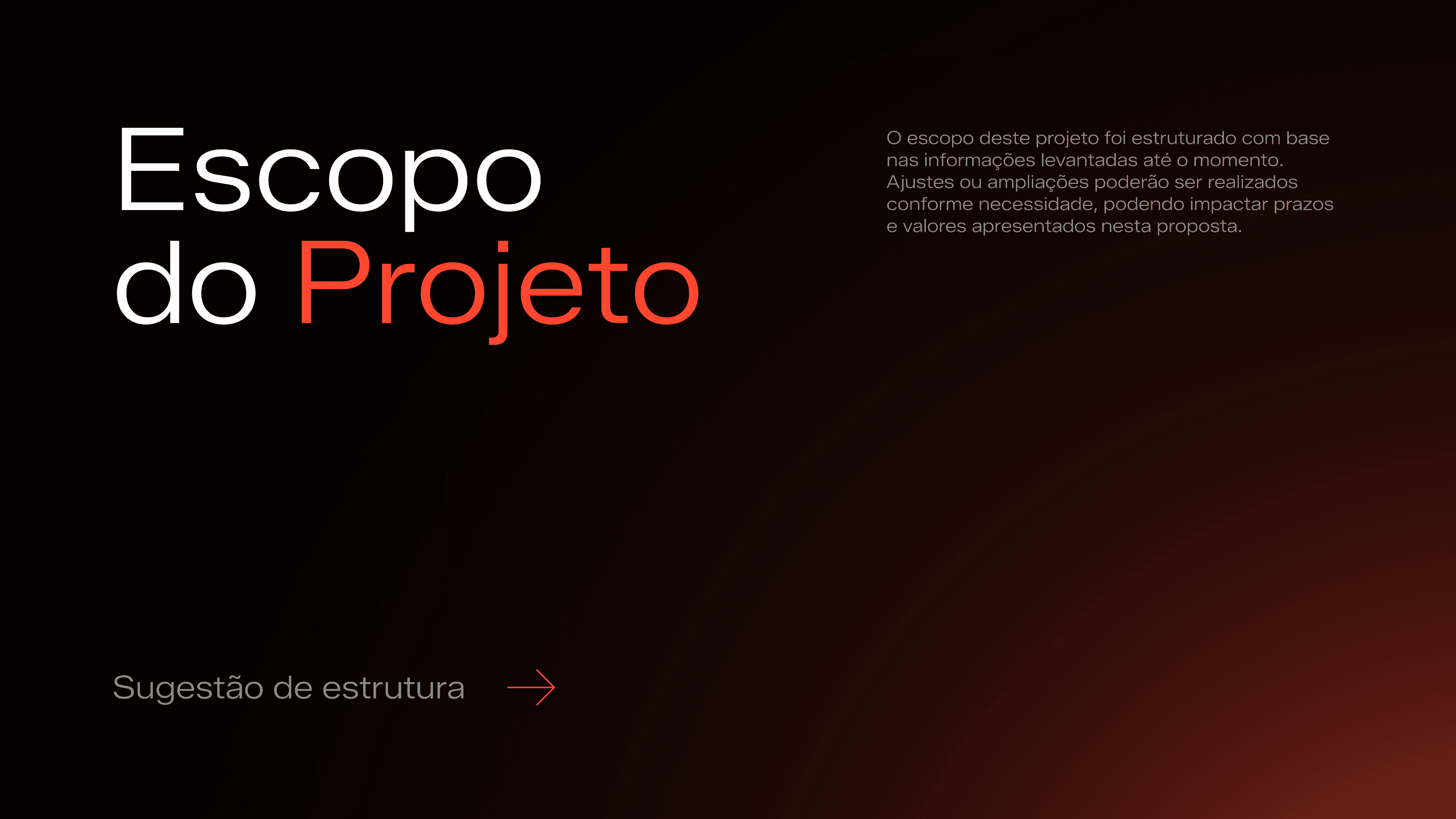 Documento completo, dividido de forma lógica para que o empresário compreenda escopo, prazos, entregas e etapas do projeto sem confusão.