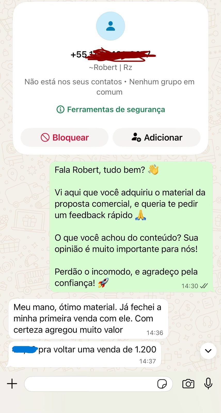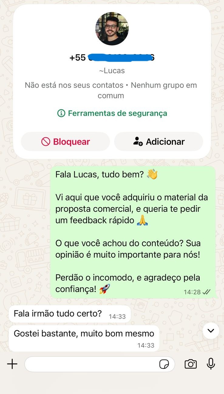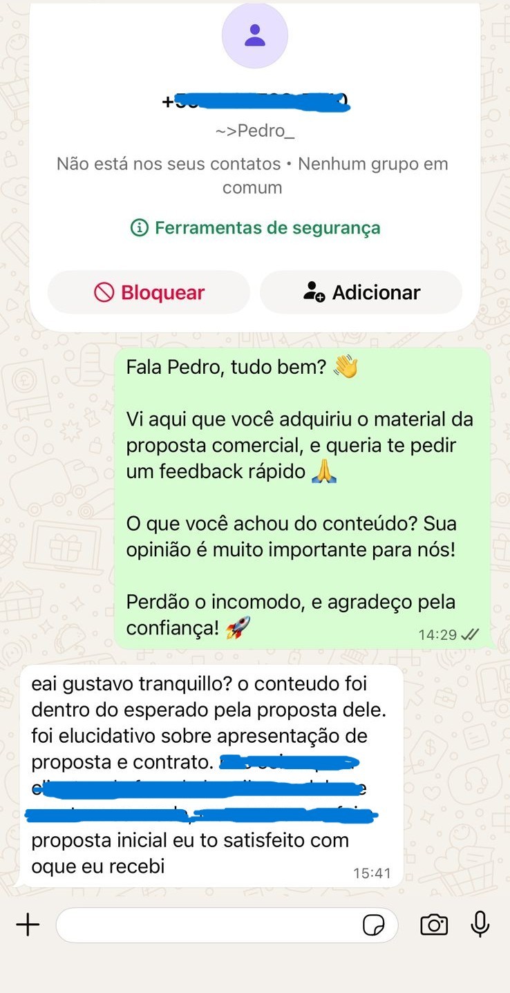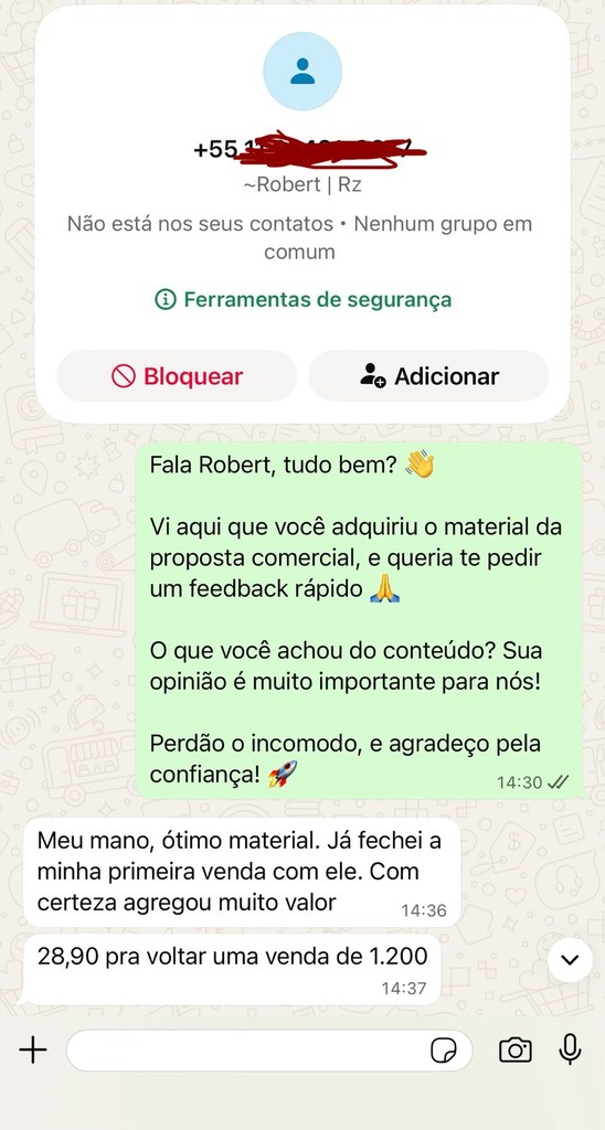 "Meu mano, ótimo material. Já fechei a minha primeira venda com ele. Com certeza agregou muito valor"