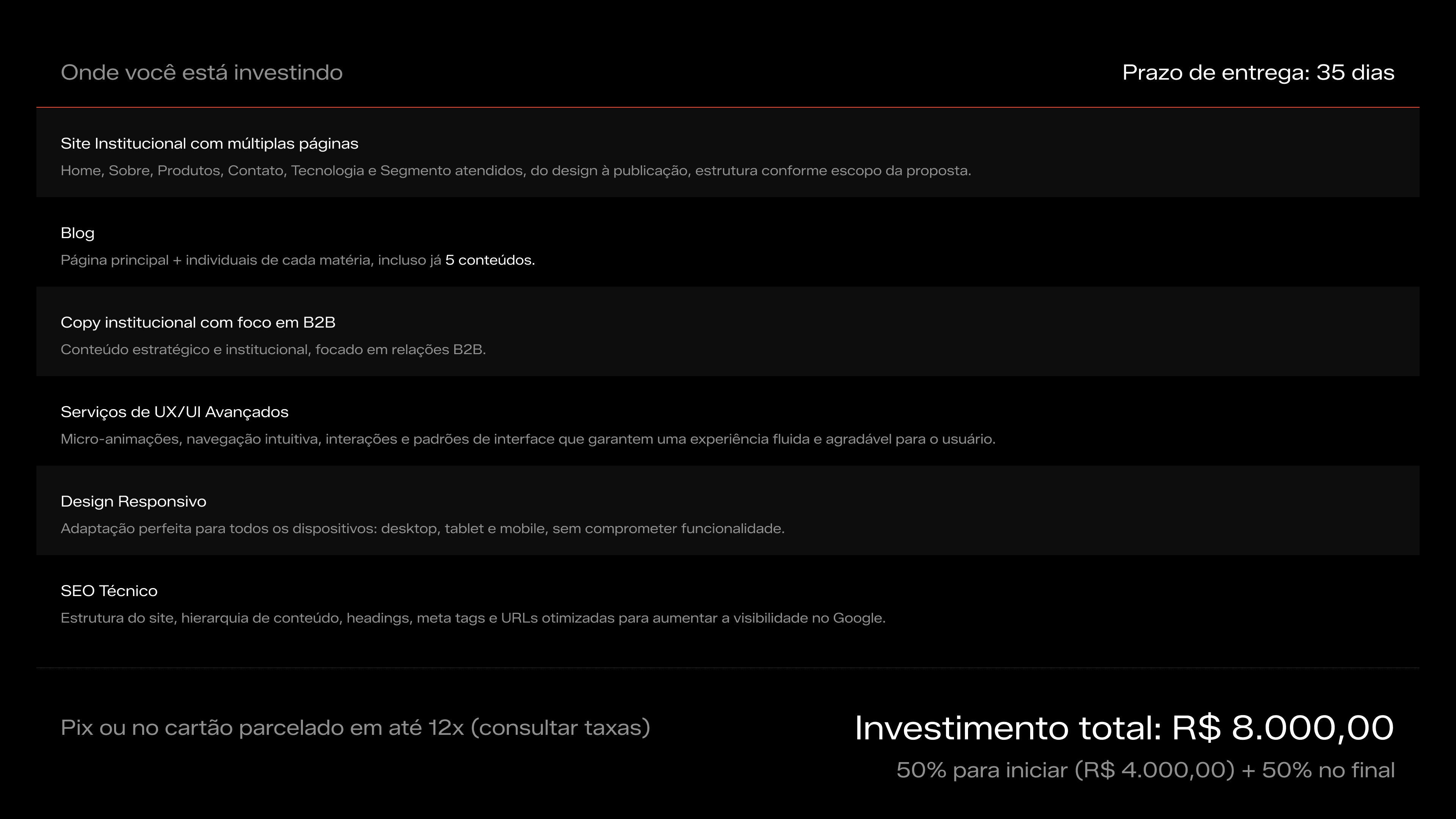 Use uma proposta profissional pronta, editável e feita pra fechar projetos, sem precisar criar nada do zero.